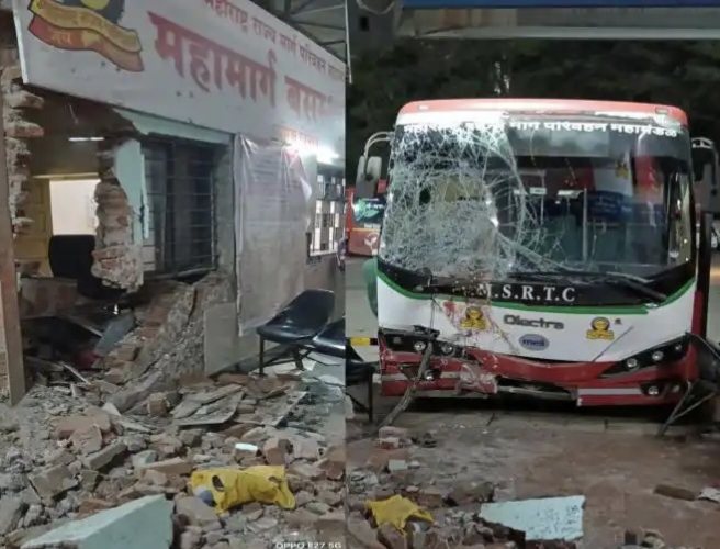 राज्य परिवहन महामंडळाची इलेक्ट्रिक बस सुरु करताच मोठा आवाज झाला आणि बस थेट बसस्थानकात शिरली ; एका महिलेचा मृत्यू तर एक प्रवासी गंभीर जखमी ; बसचालक पोलिसांच्या ताब्यात
