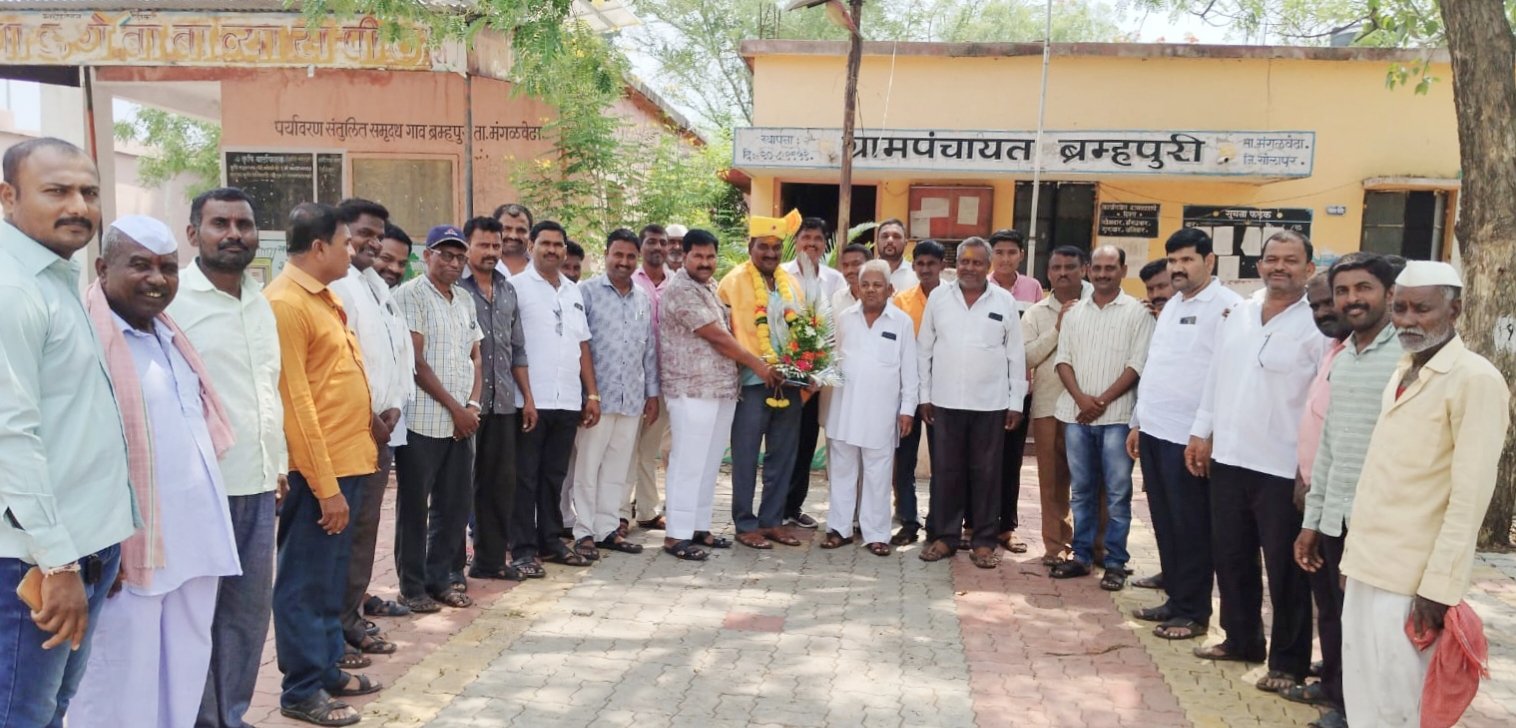 ब्रह्मपुरीचे सरपंच तानाजी नाना पाटील व माजी सरपंच विजयसिंह पाटील यांचेहस्ते शाल, श्रीफळ, मानाचा फेटा बांधून सत्कार करण्यात आला. श्री संत दामाजी सहकारी साखर कारखान्याचे माजी संचालक राजन भैय्या पाटील, सिद्धेश्वर कोकरे, सतीश बापू पवार, आनंद पाटील, औदुंबर पाटील, बाळासाहेब पाटील, शंकर माळी, विक्रम पाटील, धनंजय रणे, माणिक बाबा पाटील, राजेंद्र रणे, विकास पुजारी, दत्तात्रय रणे बालाजी पुजारी, विनोद पुजारी, प्रशांत पाटील, शामराव खाडे, दादासाहेब खरकदारे, गजानन पुजारी, संजय लवटे, गुडोपंत कुंभार, मोहन पवार यांच्यासह ब्रह्मपुरी व परिसरातील नागरिक या छोटेखानी सत्कार समारंभासाठी मोठ्या संख्येने उपस्थित होते.