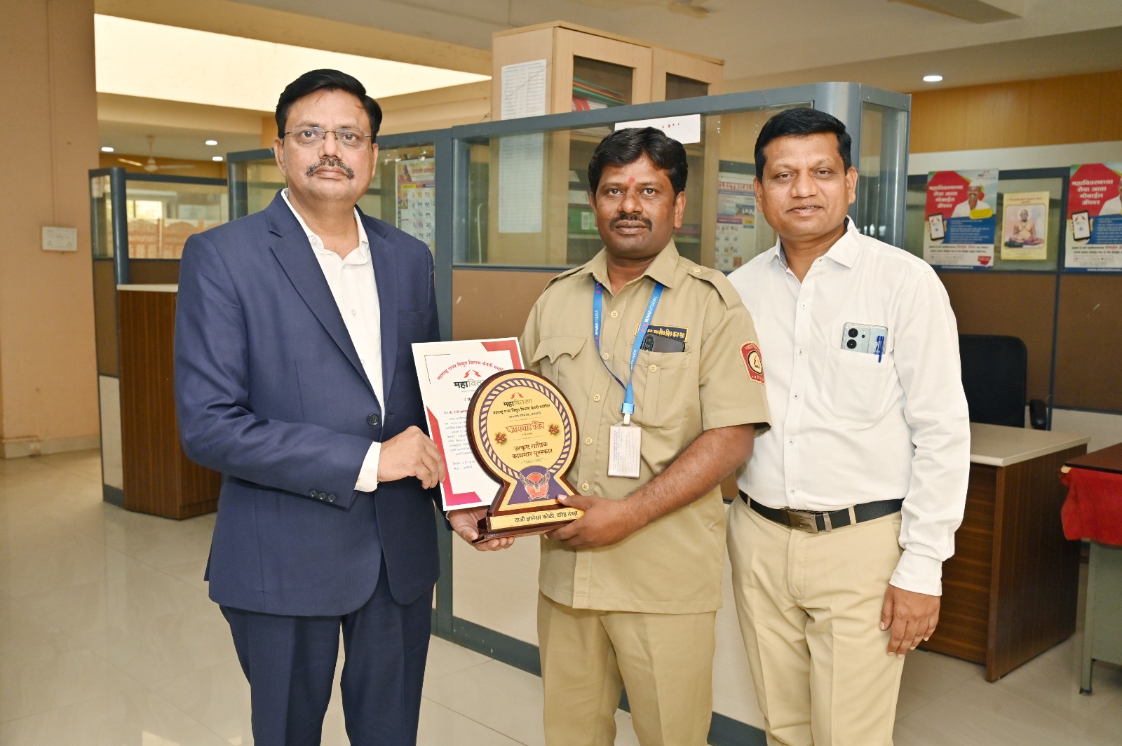 महाराष्ट्र राज्य विद्युत वितरण कंपनी तथा महावितरणचे वरिष्ठ तंत्रज्ञ दाजी ज्ञानेश्वर कोळी यांना उल्लेखनीय कामगिरीबद्दल महाराष्ट्र राज्य विद्युत वितरण कंपनीकडून २०२३-२४ मधील उत्कृष्ट कार्याबद्दल प्रशस्तीपत्र व सन्मानचिन्ह देऊन सन्मानित करण्यात आले.