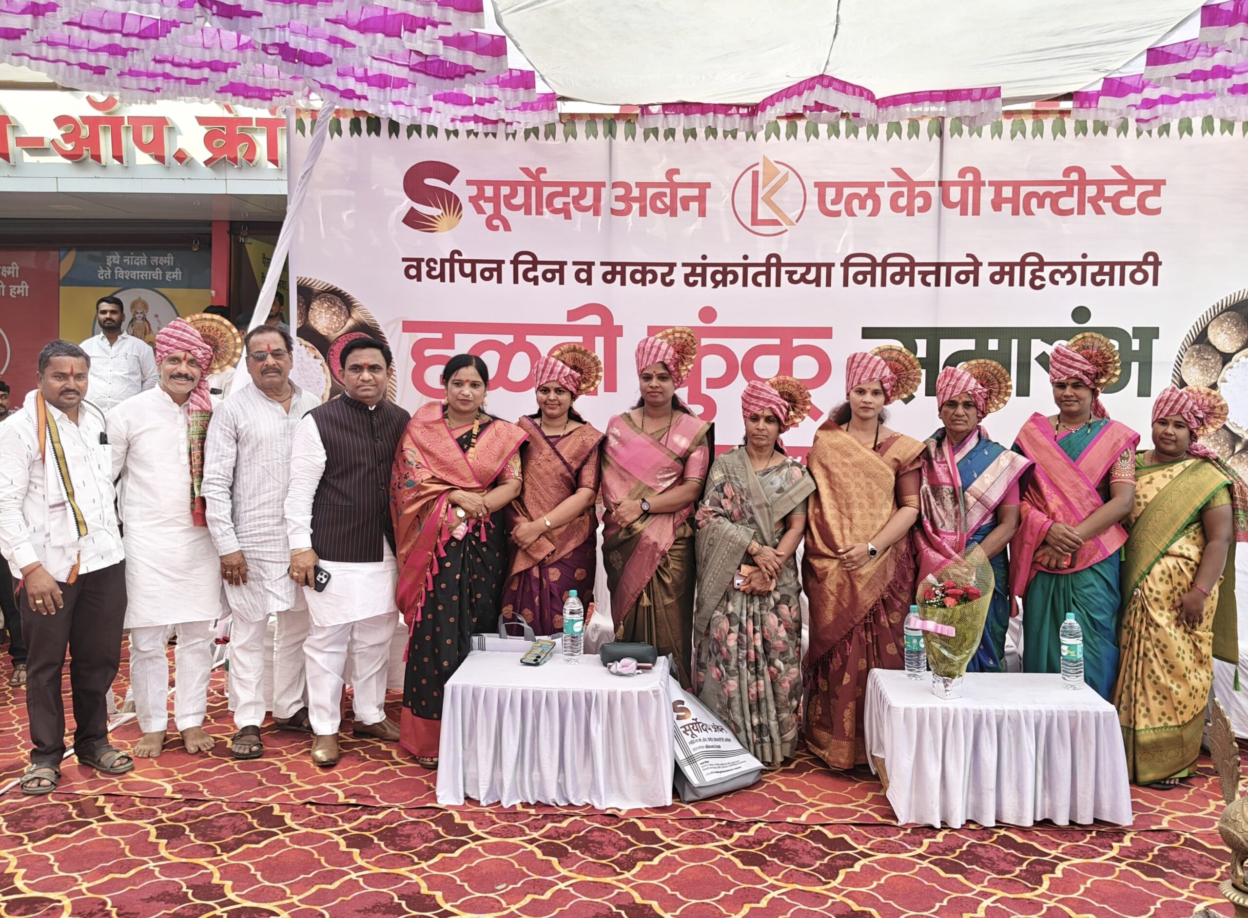 यावेळी मंचावर सूर्योदय महिला अर्बनच्या चेअरमन अर्चनाताई इंगवले, लता अवताडे, गणेश धोत्रे, नितीन मेटकरी, सचिन नागणे, वैभव लेंडवे, दत्तात्रय भुसे, योगेश पवार, दत्तात्रय माने व सोमनाथ सावंत, संचालक संतोष इंगवले, मोहन इंगवले तसेच सीईओ अजित दिघे इत्यादी मान्यवर उपस्थित होते. कार्यक्रमाला मोठ्या प्रमाणावर गर्दी होऊन देखील सर्व प्रकारच्या उत्तम सुविधेसह अत्यंत शिस्तबद्ध कार्यक्रम संपन्न झाल्याबद्दल उपस्थित महिलांनी समाधान व्यक्त केले. सदर कार्यक्रम यशस्वी करण्यासाठी या दोन्ही संस्थांतील अधिकारी तसेच कर्मचाऱ्यांनी परिश्रम घेतले.