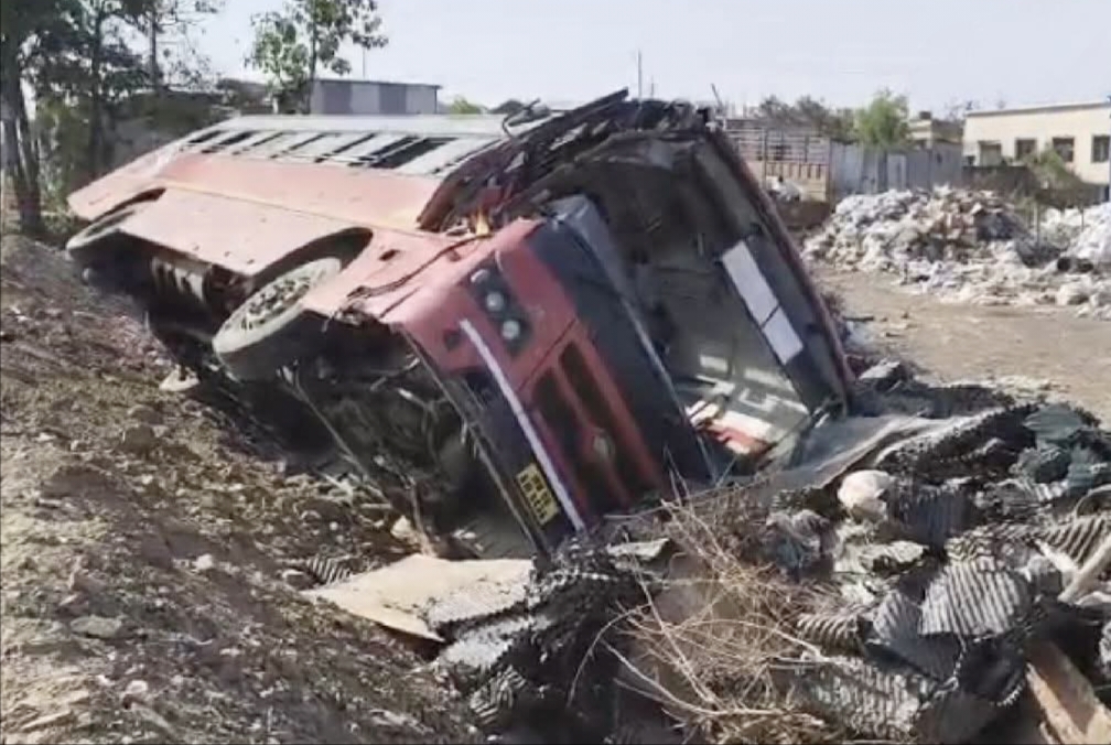 मिळालेल्या माहितीनुसार, सोलापूर-पुणे ही महाराष्ट्र राज्य मार्ग परिवहन महामंडळाची बस आपल्या मार्गाने जात असताना एका भरधाव कंटेनरने चालकाच्या बाजूने ओव्हरटेक करण्याचा प्रयत्न केला. यावेळी कंटेनरची एसटीला इतकी जोरात धडक बसली की एसटी बस चालकाचे गाडीवरील नियंत्रण सुटले. महामार्गावर सध्या रुंदीकरणाचे काम सुरू असल्याने रस्त्याच्या कडेला जाऊन उलटली. बसच्या पुढच्या आणि मागच्या भागाचे मोठ्या प्रमाणात नुकसान झाले आहे.