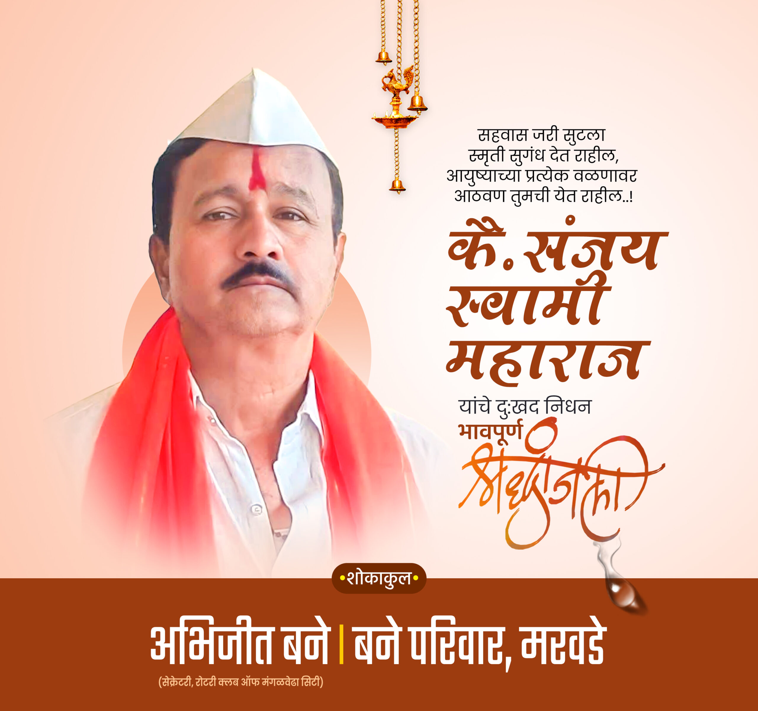 मरवडे तालुका मंगळवेढा येथील ज्येष्ठ पंचांगकर्ते व पुरोहित संजय सन्मुख स्वामी महाराज यांचे आज सायंकाळी हृदयविकाराच्या तीव्र झटक्याने निधन झाले. मृत्यूसमयी ते 55 वर्षांचे होते.