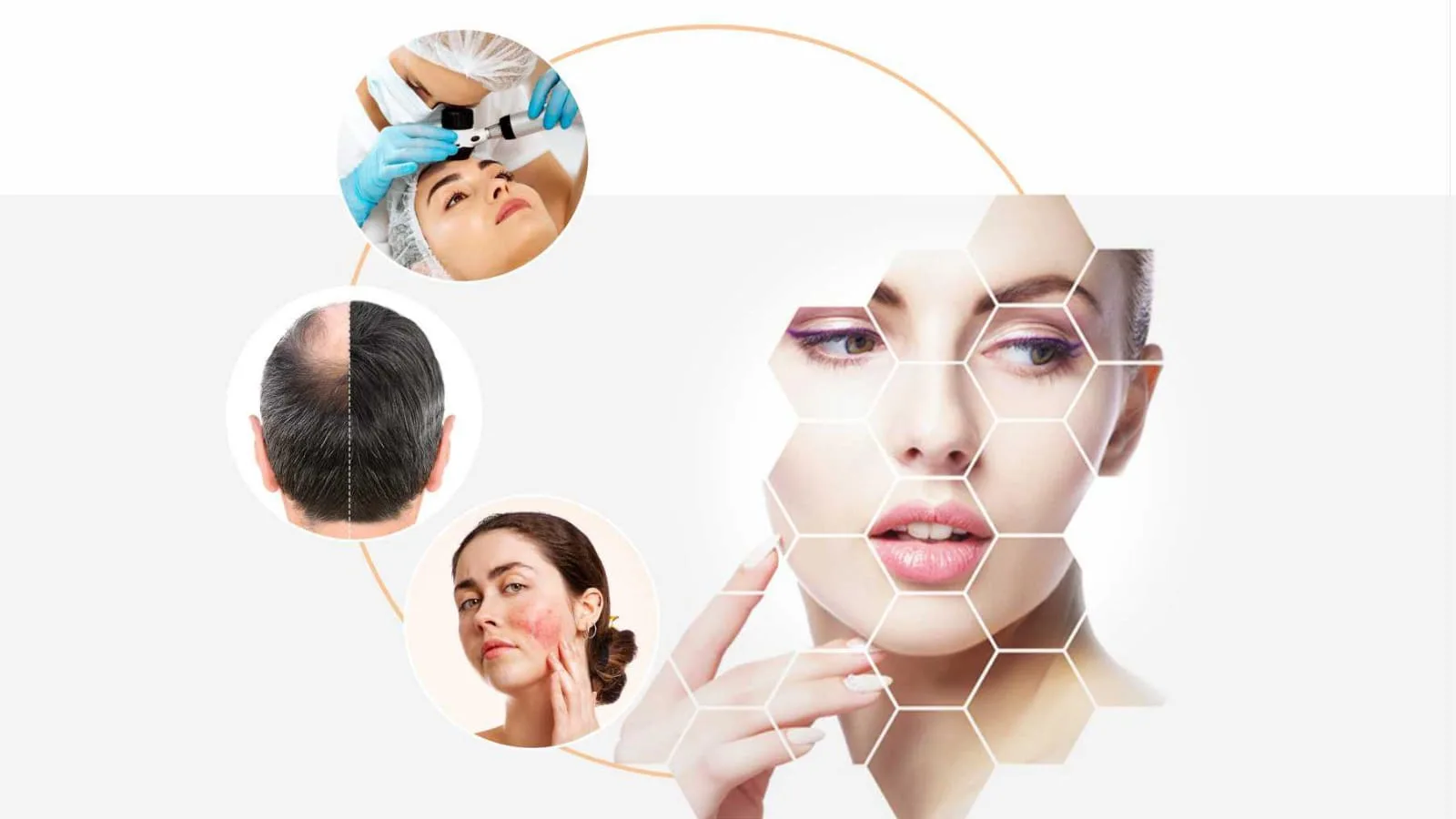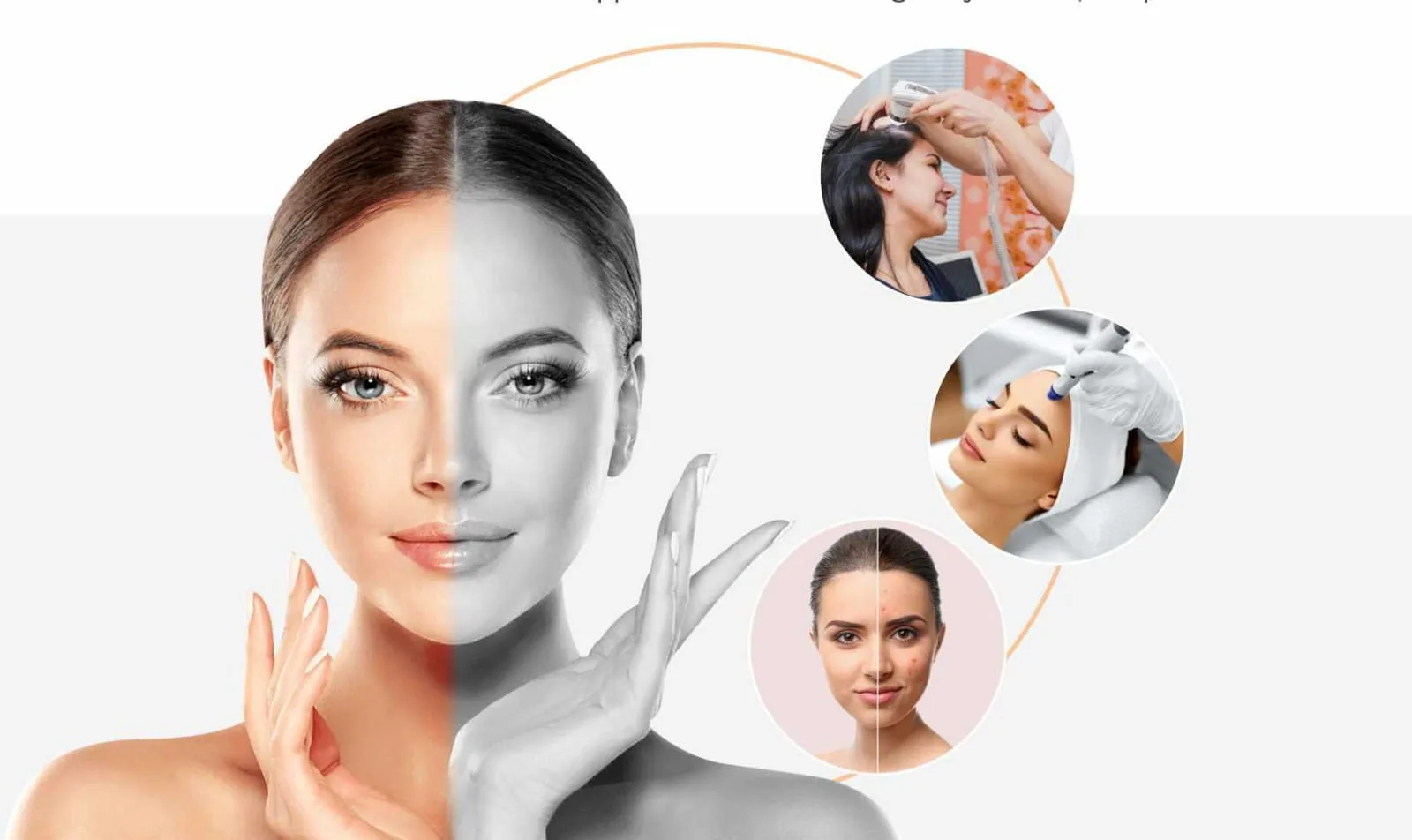 डायोड लेसर : चेहऱ्यावरील अनावश्यक केस, इक्झायमर लेसर : कोड, क्यू स्विच लेसर : गोंदण, आयपीएल लेसर : पिंपल, काळे डाग, वांग, आयग्रो लेसर : केस गळतीसाठी, मायक्रोडर्मअब्रेझन : स्किन ब्राईटनिंग, पिलिंग : चेहरा काळवंडणे, रेडिओ फ्रिक्वेन्सी : चामखीळ, मस व तीळ, मायक्रोनीडल आर एफ : सुरकुत्या, चेहऱ्यावरील खड्डे घालवणे, हेअर ट्रीटमेंट : केस गळणे, अकाली केस पांढरे होणे, चाई व कोंडा, कोरडे केस, युव्हीबी लाईट थेरपी : कोड व सोरायसिस, डर्मारोलर : चेहऱ्यावरील व्रण, अँटी एजिंग ट्रीटमेंट : चेहऱ्यावरील सुरकुत्या, मिझोथेरपी : टक्कल, क्रायोथेरपी : तारुण्य पिटिका (पिंपल), किलॉइड, लहान मुलांचे त्वचा आजार, आयन्टोफोरेसिस : हात व पायावरील अतिरिक्त घामासाठी, पीआरपी : विरळ केस, न भरून येणाऱ्या जखमांसाठी, ॲक्यूजेल : डोळ्याभोवतीच्या काळ्या वर्तुळासाठी इत्यादी सुविधा उपलब्ध आहेत.