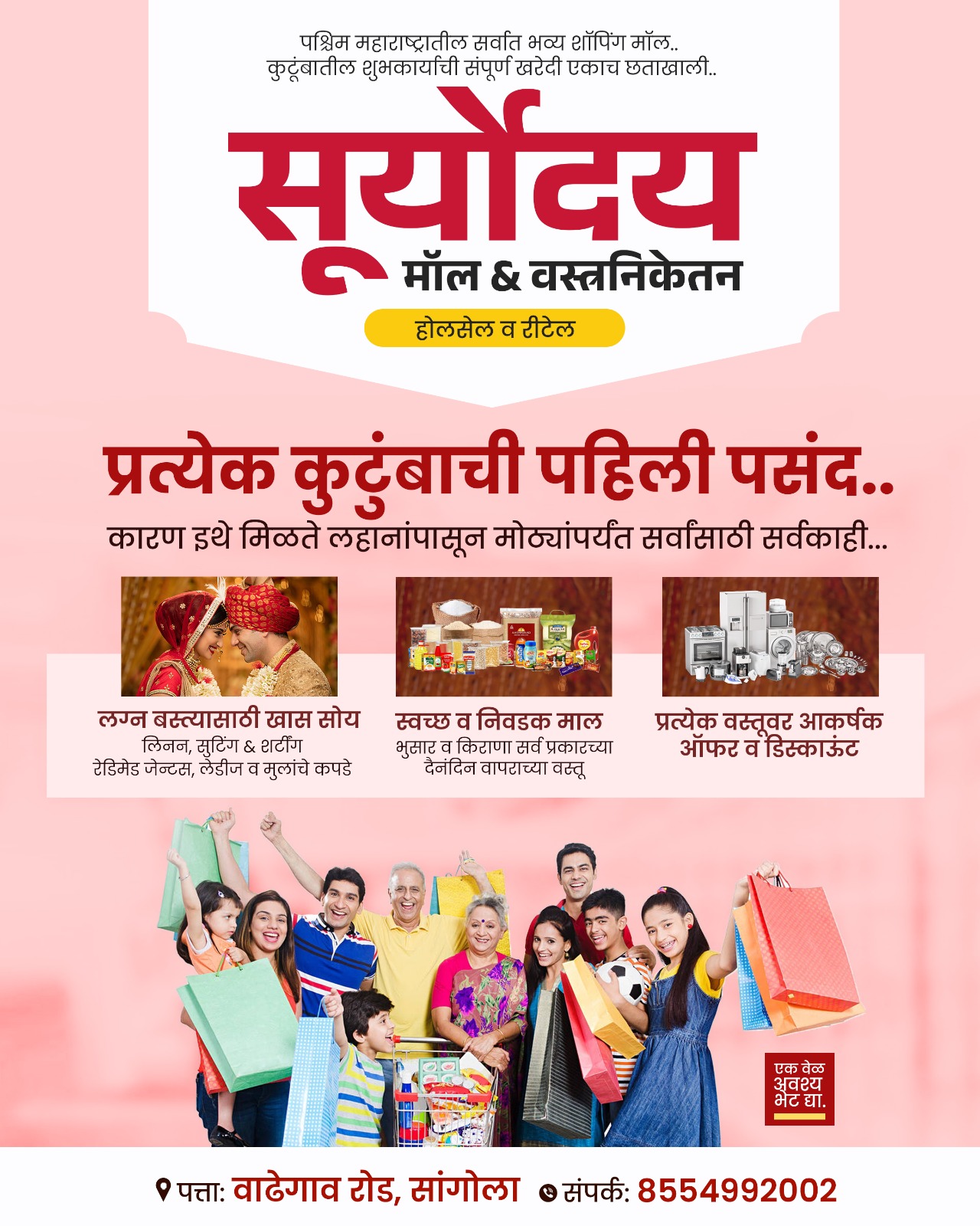 जगातील अनेक देशांची वृद्धत्वाकडे वाटचाल सुरू असताना आपला भारत देश मात्र तरुणांचा देश म्हणून समोर येत आहे. या देशातील युवाशक्तीला योग्य मार्गाला वळवणे अत्यंत गरजेचे आहे. अशा परिस्थितीमध्ये आपल्या महाराष्ट्रात एलकेपी मल्टीस्टेट, सूर्योदय अर्बन, सूर्योदय अर्बन महिला, सूर्योदय मॉल, वस्त्रनिकेतन आणि फर्निचर मॉल त्याचबरोबर सूर्योदय दूध विभाग यासारख्या अनेक उद्योगातून युवकांच्या हाताला काम देत मोठ्या प्रमाणावर रोजगार निर्मिती करणारा हा सूर्योदय परिवार सामाजिक बांधिलकी जपण्यात देखील त्याहूनही पुढे आहे. असे गौरवोद्गार महाराष्ट्रातील ख्यातनाम वक्ते आणि कवी अविनाश भारती यांनी व्यक्त केले.