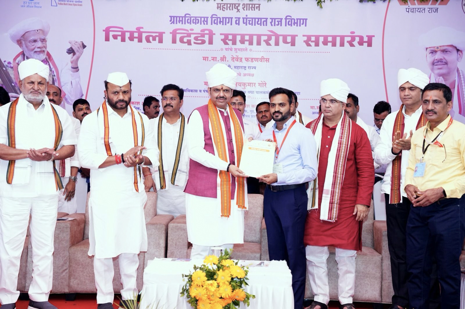 आमदार सचिन कल्याणशेट्टी यांनी मुख्यमंत्री यांना बोलून ग्रामविकास मंत्री व पालकमंत्री जयकुमार गोरे यांचे मार्गदर्शनाखाली प्रशासनातील अधिकारी यांनी चांगले काम केलेचे निदर्शनास आणून दिले नंतर मुख्यमंत्री देवेंद्र फडणवीस यांनी स्वतःहून पालकमंत्री जयकुमार गोरे यांचा वारकरी फेटा, उपरणे घालून सन्मान केला. पालकमंत्री गोरे यांनी मनाचा मोठेपणा दाखवत जिल्हाधिकारी कुमार आशिर्वाद व सिईओ कुलदीप जंगम यांचा सन्मान करणेची विनंती मुख्यमंत्री देवेंद्र फडणवीस यांचेकडे केली. पालकमंत्री गोरे यांनी हे काम सफाई कर्मचारी यांचे पासून विभागीय आयुक्त यांचे पर्यंत सर्वानी परिश्रम घेतले आहेत असे सांगून श्रेय सर्वाना देऊन टाकले.